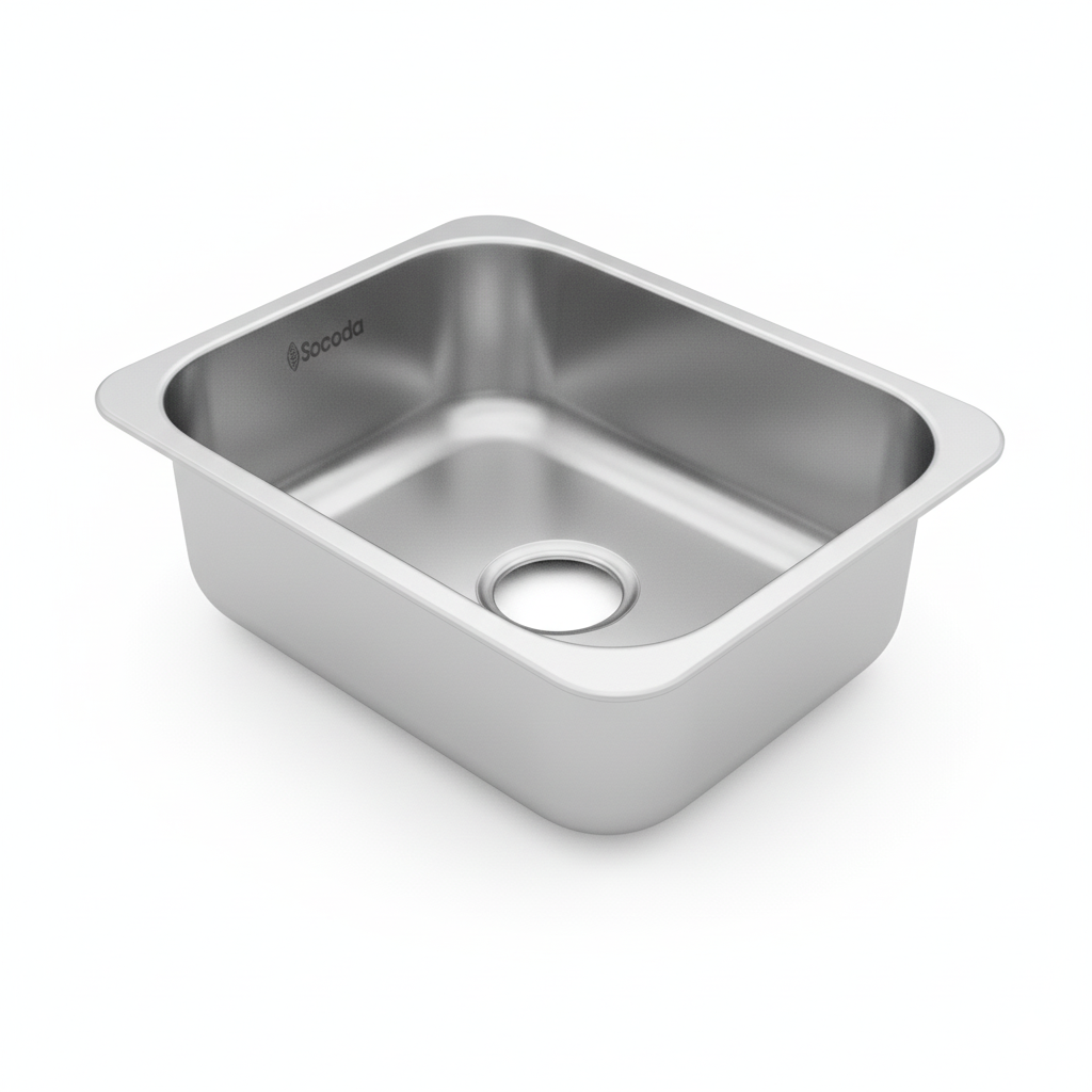 Lavaplatos de Empotrar en Acero Inoxidable con acabado satinado, con profundidad media, ideal para espacios reducidos, sin perforación para la grifería.